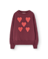 Deep burgandy sweatshirt with sweet read hearts design on the front.