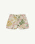 Floral printed woven cotton shorts featuring an elasticized waist, straight fit and cute side notches, and a small The Animals Observatory logo at bottom of left leg. Made from 100% cotton.