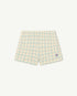 Cute cotton shorts with an aqua blue grid print with tiny red dots on natural colored background. Features a small The Animals Observatory logo at left bottom. Made from 100% cotton.