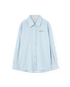 Chic gender neutral button down shirt in a light dusty blue. Features the Animals Observatory logo and text at left chest, Paris 2015 design across back, button down front and loose fit.