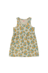 Pretty floral print ribbed cotton tank dress. Features a scoop neck and gathered waist.