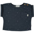 Inspired by the night sky, this adorable top is deep navy with tiny stars print. Lightweight, woven cotton fabric. Features cuffed sleeves and two beautiful wooden buttons at left shoulder for easy dressing. Pair with cute shorts or pants for and everyday outfit; we love it with our Knit Rib Leggings, Hawthrone Trouser,  or Tomasso Short.