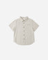 Classic collared boys short sleeve striped button-down shirt with coconut buttons.