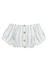 Feminine airy top. Features stretchy neckline that allows for either on or off the shoulder, four button closure and elasticized waistband. Pair with Eberjey Edu Shorts for a cute set.