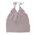 Adorable knit dress with triangle top and adjustable tie straps. Features a simple raised line knit pattern throughout. Made from 100% Cotton.