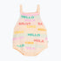 These bestselling bubble baby shortie in a playful navy and rainbow ‘HELLO’ Jaquard design, is the perfect addition to your little one’s wardrobe and makes the perfect unisex newborn gift. Premium organic cotton is both soft and breathable, and it’s bound to become a summer staple.