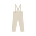 Soft ribbed pants. Features elasticized waistband with two decorative buttons and adjustable suspenders that can be worn either cross backed or over the shoulders.