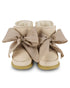 Adorable and plush leather booties. Features pretty ribbon wrap ties, faux fur lining for warmth and rubber soles to prevent slipping.
