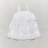 Angelic cotton polyester crushed cotton dress in white. Features a crinkle texture, midi length, puff sleeves, natural button closures at top of back and two side pockets. It has a raw hem and white tulle details on the skirt.