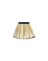 Dazzling mini skirt in metallic gold sunray pleats and black tulle underskirt. A-line cut with exposed elastic waistband. Raw hem finish on the bottom.