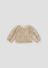 A gorgeous champagne colored top covered all over in small sequins. Features soft edges and a keyhole back opening. The perfect top for celebrations. See skirt pictured for a coordinated look.