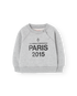 Nostalgic grey sweatshirt celebrates Paris with text on the front and a cute sunny design on the back.