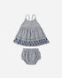 Beautiful two piece gingham print set featuring a swing tank top with spaghetti straps, elastic back and an embroidered hemline. Comes with matching bloomers.