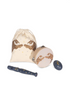 Set of instruments for the tiny musician. Comes in a drawstring cotton bag and contains: A tambourine, a rattle egg, a flute Claves. This product is made of FSC™-certified beech wood. Features a cute tigers design.