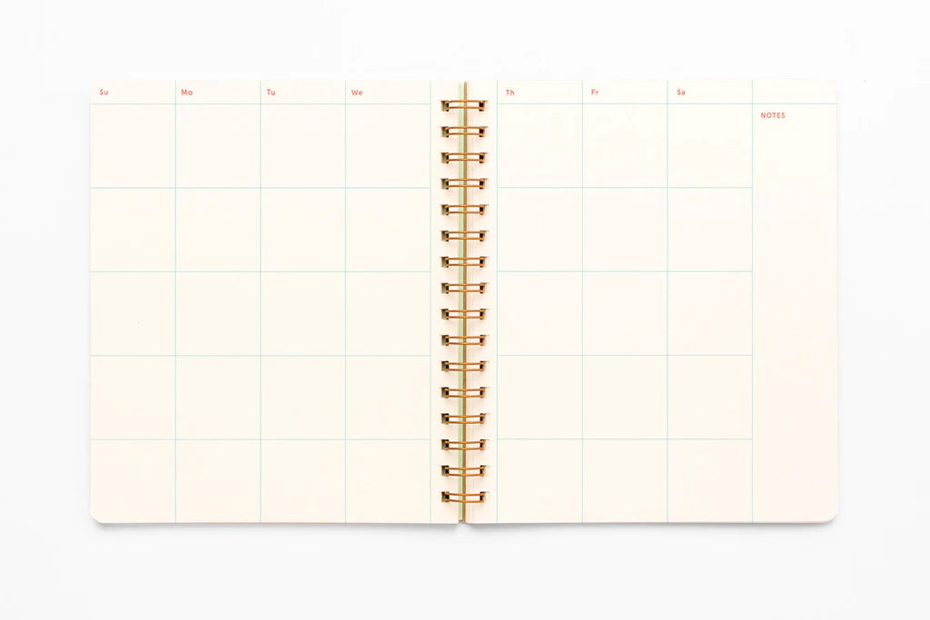 Limited Edition Tie-Dye Planner. With a letterpressed cover and beautiful interior undated monthly and weekly pages, this planner was designed, printed and assembled by hand in the US. The planner lays open flat thanks to the beautiful brass wire-o binding. Undated so you can start using it as soon as you receive it.