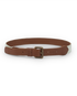 Brown leather belt mixed with neutral toned "soft blue" color and white "The Animals Observatory" writing along the fabric portion of the belt. Belt buckle is a gold-brass color.