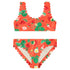 "Strawberry Red" bikini in a statement print and shape. Made from recycled polyester with UV protection 50+. Features a wide top with wide straps, a deep back, and soft, wavy edges. The bottom has an elastic waist, soft, wavy edges at the legs, a regular fit, and full lining.