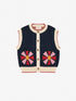 Navy blue jumper. Designed with crew neck, sleeveless, front button fastening, embroidery, jacquard, loose fit and ribbed bottom. Made in Spain.