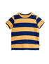 Blue and golden beige wide striped tee in a soft stretch cotton.