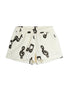Comfy lightweight shorts with an all over notes print in black. Features an elasticized waist and two side pockets.