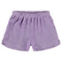 Purple sporty terry shorts in a soft cotton blend. Featuring a loose fit, elastic waist, two side pockets, and small side slits. The soft cotton terry dries quickly and is ideal for the beach or pool.