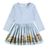 Long-sleeved dress in light blue with a cute print of crocheted teddy bears. The top is slim-fitting in ribbed jersey, while the skirt is in poplin, which gives the dress volume. A comfy everyday piece.