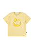 Yellow organic cotton T-shirt with short sleeves and ribbed neckline. The T-shirt has a loose fit and a playful front print of a smiley face made from a banana and lemons.