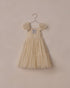 Dreamy feminine dress crafted from delicate swiss dot tulle. Features a smocked bodice adorned with a charming bow appliqué, bubble cap sleeves, and a full, tiered skirt for a whimsical, twirl-worthy look.