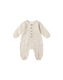 Long sleeve jumpsuit in a lightweight gauze fabric with coconut button placket on the chest, and hidden snaps between the legs for easy changing. Elastic at the sleeve and leg openings for the perfect fit.
