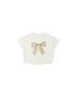 Boxy-fit tee with a cute bow design on the front. Features a classic crew neckline and dropped sleeves for an effortlessly relaxed look and all-day comfort.