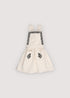 Gorgeous off white/natural colored pinafore with contrast embroidery. Fatures a classic crossback with adjustable length straps and two front pockets.