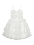 The Layer Cake Tutu Dress is a slice of pure sweetness, crafted for little ones who love to twirl in style! This dreamy white dress features a bodice adorned with soft, tulle flowers, each sparkling with a gem at the centre. The real magic happens in the skirt, where layers of opulent tulle ruffles create a frothy, cloud-like effect, perfect for dancing, spinning, and living life in full bloom. With its soft floral details and generous layers, this dress is all about pure, whimsical elegance, the epitome of flower girl perfection.