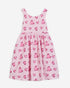 Sweet summer dress with an allover heart shaped shell pattern. Features rounded neck, tank straps with a peek-a-boo cut out back, elasticized waistband and loose fit bottom.