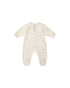 Soft cotton jumpsuit in cream with scattered moons and stars. Features a relaxed silhouette with a small chest pocket and button placket for a classic look. Snaps at the inseam allow for easy changing.