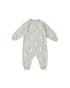 Long sleeve french terry jumper with an all over Doves print. Features elastic leg openings, a roomy fit, snap buttons at back and button snap closures between the legs for easy changing.