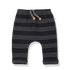 Soft fleece lined pants. Features elastic waistband, grey waist tie with leather look detail, rolled cuffs and allover grey stripe pattern. Pair with this sweater for a cute set.