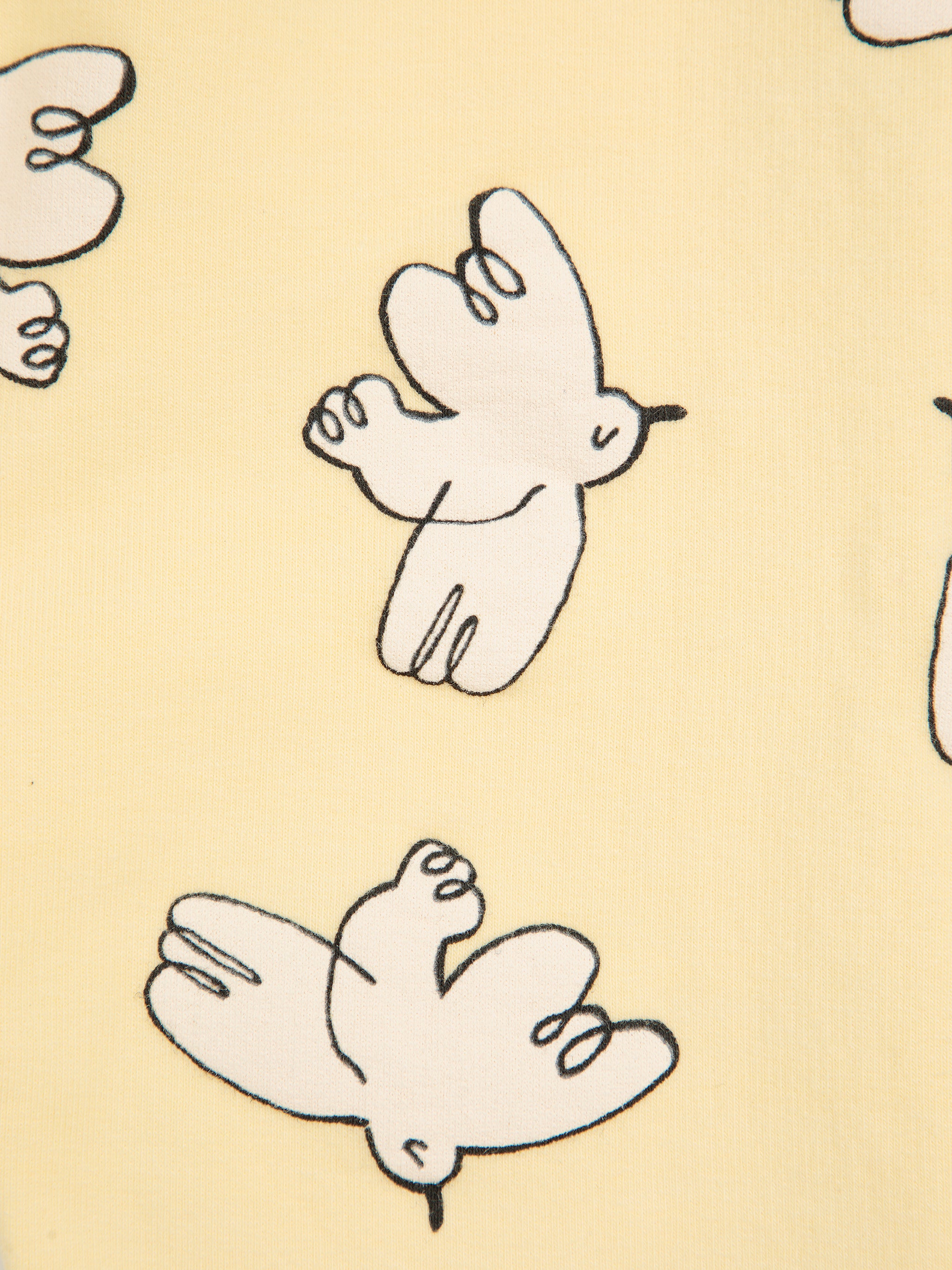 Cute all over birds printed pants in a soft yellow.