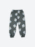 Charcoal colored jogging pants with an all over elephant print. Features an elasticized waist. Pair with the matching hoodie for the set.