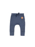 Cool ink dyed cotton drop crotch pants with a cute huxbear patch and elasticized waist with drawstring.