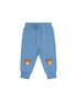 Sporty, premium organic cotton fleece retro track pant with fur bear applique on knees, features non-functional (decorative) drawstring and soft elasticized waistband. Made from GOTS certified organic cotton.