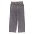 Cool oversized skate fit grey denim with a peace sign on the pocket. Made in a soft, durable cotton quality. Featuring side and back pockets, an inner, adjustable elastic at the waist so it fits most children perfectly. Sizes 6Y-9Y have a snap closure for easy dressing, while sizes 10Y and 11Y have a regular jeans button.