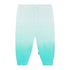 Cute baby trousers in gradient shades of blue-green. Features an elasticized drawstring waist and ribbed cuffs on bottom. Pair with the matching sweatshirt for an adorable look.