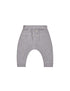 Super-soft slub knit pants with coconut button detail at center front. Featuring rolled leg cuffs, an elastic waistband, and a dropped crotch. Made of 100% Cotton. Pair with this long sleeve for the look pictured