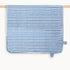Soft hooded baby blanket. Features blue and off-white striped pattern and cute animal ears on the hood. Measures approximately 30 in x 38 in. Pair with this playsuit for a cute look.