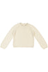 Perfectly neutral sweater in creamy ivory. Features popcorn knit sleeve, rib knit cuffs and hemline and two wooden button opening at back. Pairs beautifully for baby girls with our Amo Bloomers, and for bigger girls with our Asanna Skirt. For baby boys we love it with our Acilu pants in Aubergine Vichy and for bigger boys with either the Acilu pants in Black Vichy or Acilu pants in Khaki.