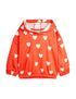 Adorable red hoodie with an all over white hearts design. Made of knitted 100% recycled polyester.