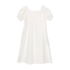 This minimalist linen dress features a square neck and short puffed sleeves. Gathered at the bust.