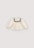 Gorgeous off white/natural colored top with contrast embroidery on the front. Featuring a button down back that opens fully for easy dressing.