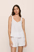Airy white cami with a double V neckline, wide straps, and an easy A-line shape. Pair with Linen Blend Relaxed Pants for a breathable, stylish look>