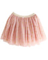Pretty blush colored tutu in soft tulle with all over sparkly gold stars. Features an elasticized waist and full, layered design. Recommended for 3-6 years.